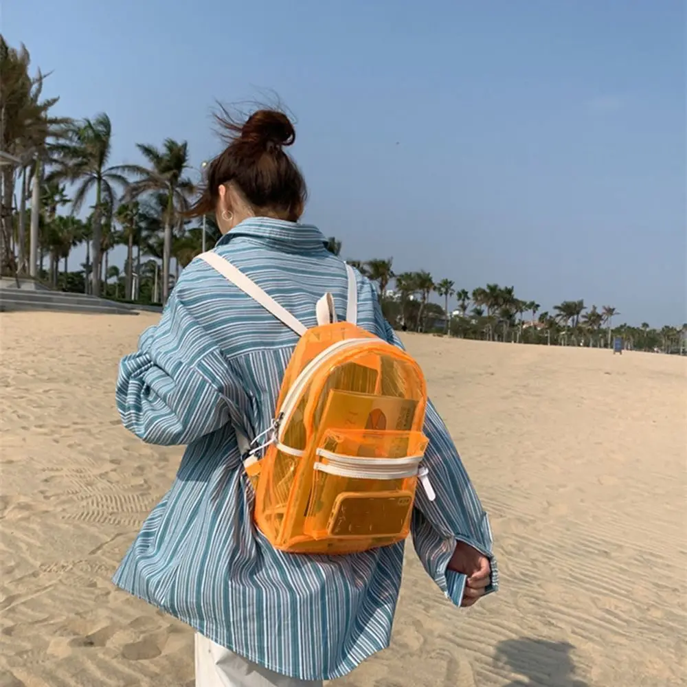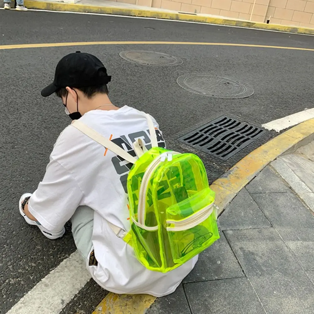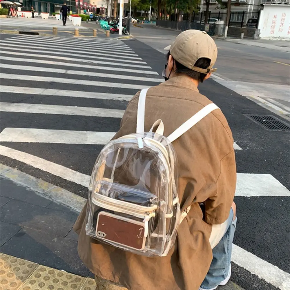 Each bag features adjustable straps for a comfortable fit, along with a waterproof design that keeps your belongings protected in any weather. The transparent material adds a modern touch while allowing you to easily locate your items—perfect for school, college, or even travel.
